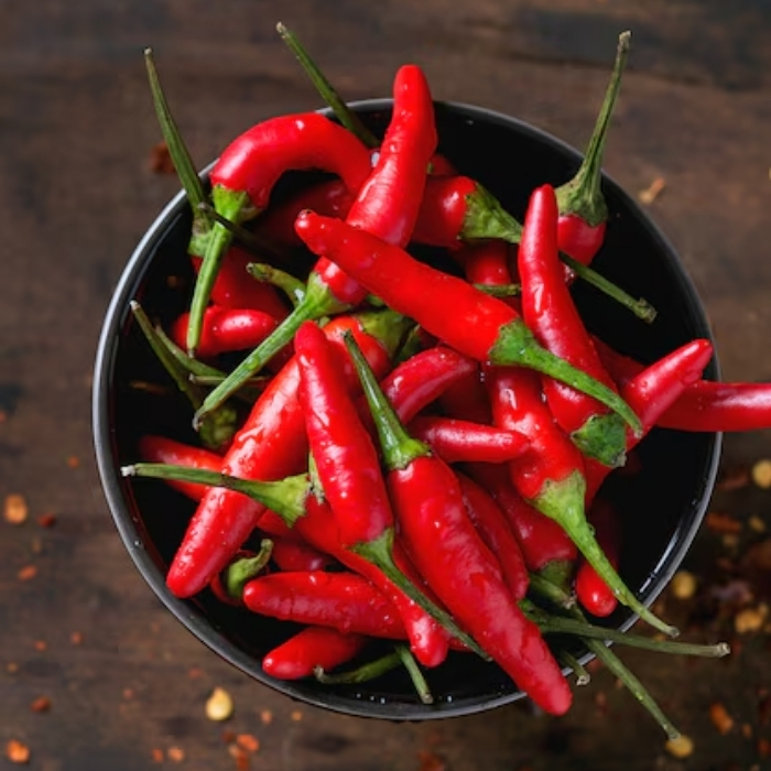 Chili Pepper is a vibrant spice known for its fiery heat and distinctive flavor.Widely used in cooking, sauces, pickles, and spice blends to add boldness to dishes.Rich in antioxidants and compounds that support metabolism and overall wellness.A staple in traditional remedies for its digestive and immunity-boosting properties.Enhances both flavor and aroma, making it a kitchen essential worldwide.Valued by chefs, home cooks, and herbal practitioners alike for its versatility.Combines culinary excitement with natural health benefits in every use.