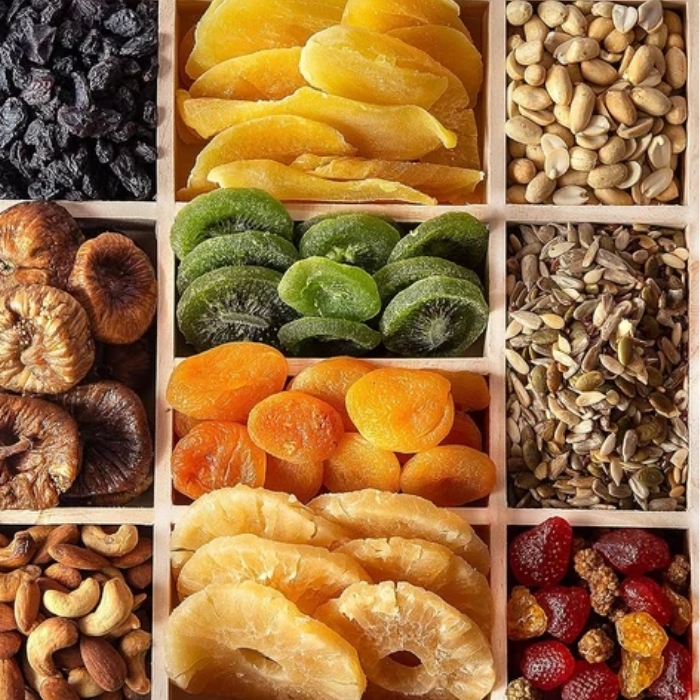 Dehydrated Fruits are carefully dried fruits that retain natural flavors, nutrients, and sweetness.Rich in vitamins, minerals, fiber, and antioxidants, they support digestion, immunity, and overall wellness.Widely used as healthy snacks, in cereals, trail mixes, desserts, and baking recipes.A convenient alternative to fresh fruits with extended shelf life and portability.