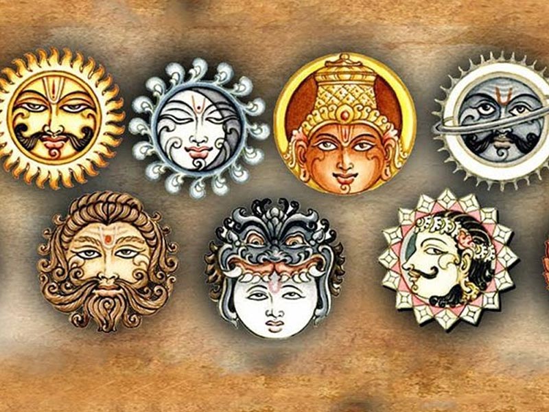 The Sun, the Moon, Mars, Mercury, Jupiter, Venus, Saturn and the two shadow planets Rahu and Ketu constitute the Sarv grahas.